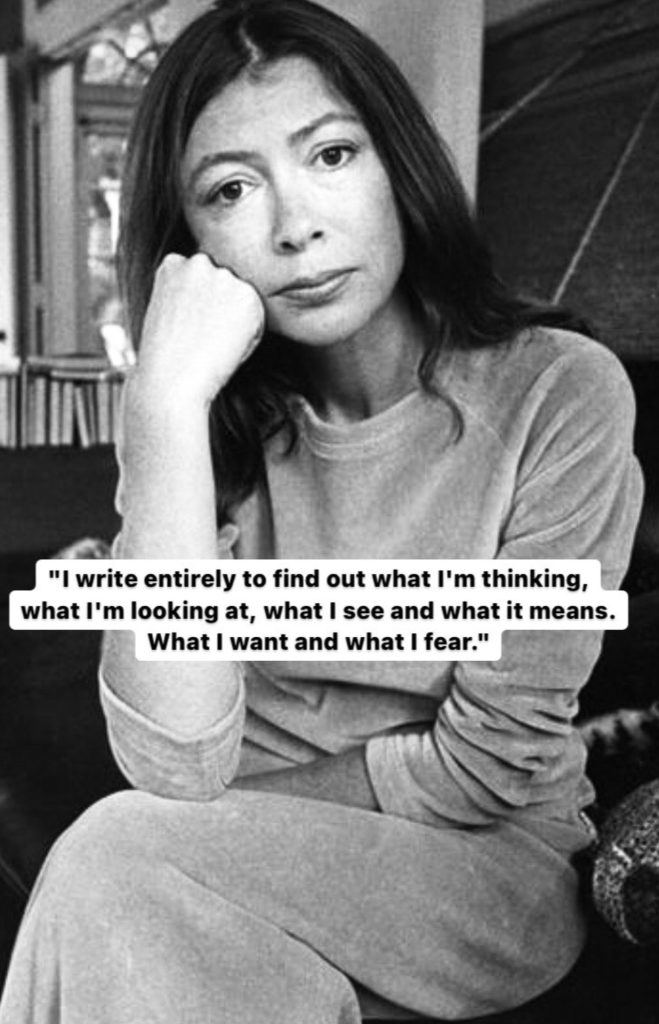 Fast-forward to 2020, in the middle of a pandemic, I don’t know what made me do it, but I went online and bought the book I left at Indigo a while back. I started reading it as soon as it was delivered. I wasn’t afraid anymore. Maybe still a little intimidated. Nevertheless, I found comfort in Joan Didion’s words and writing style, something that seemed so new to me. I had never really encountered such a style before.